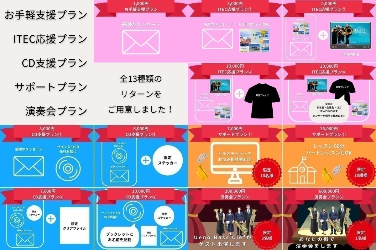 全13種類のリターンをご用意しました!