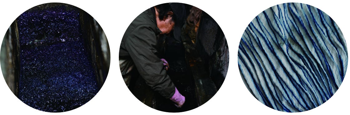 嵐絞りを加工できる世界の唯一の工房でありさらに本藍による灰汁発酵建て