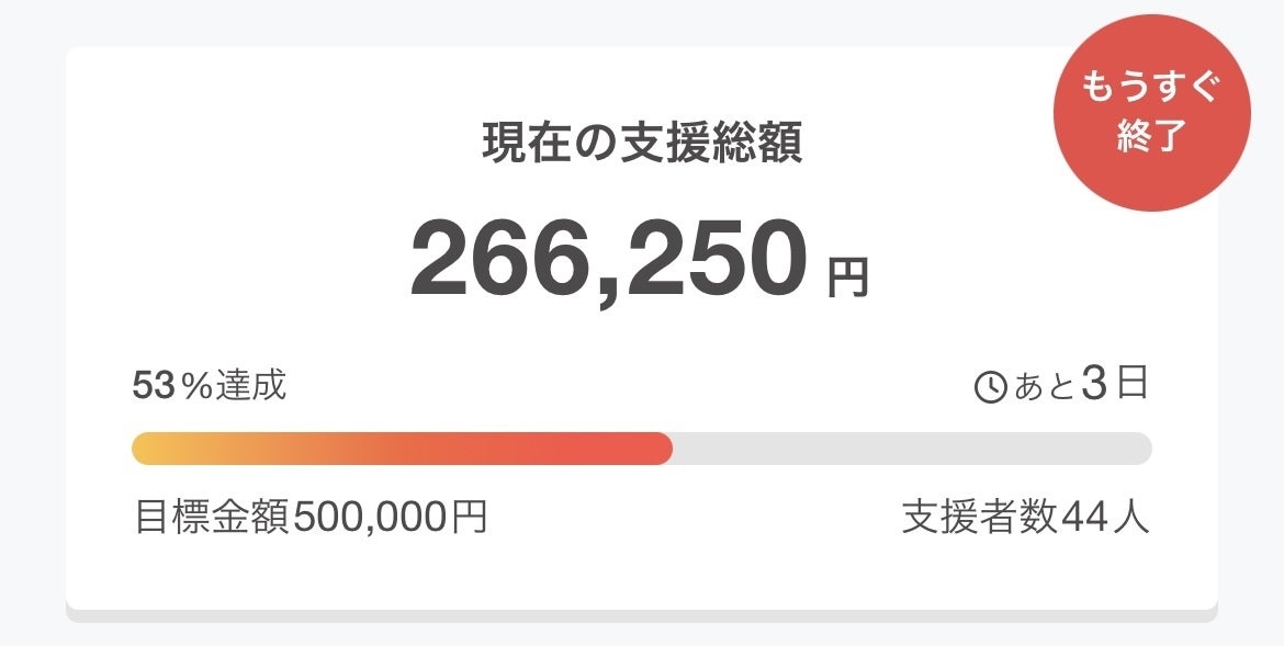 現在、45名の方にご支援いただき、達成率は54%です。