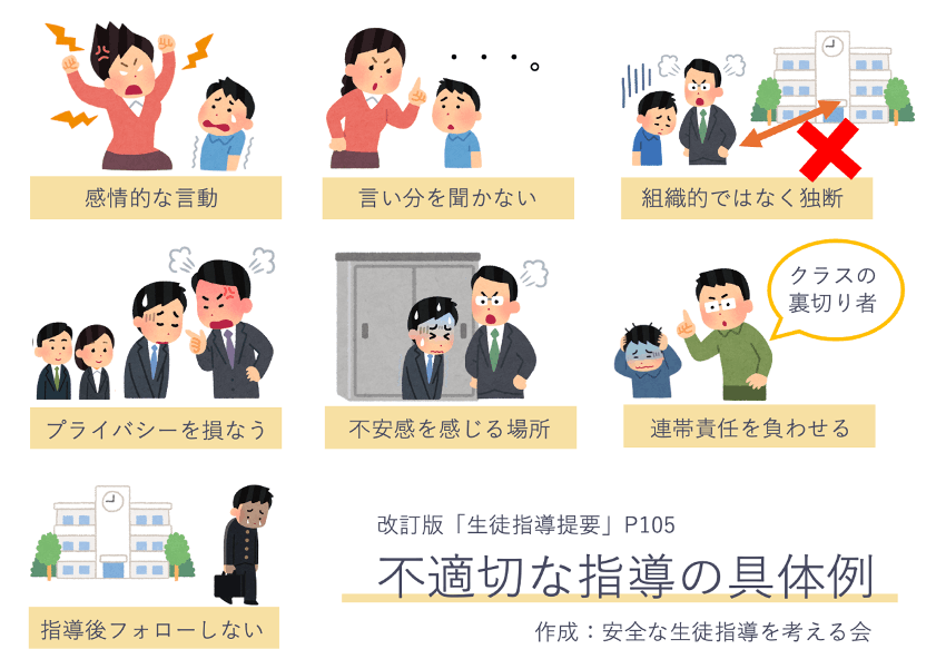 【不適切な指導と考え得る例】 令和4年12月「生徒指導提要」改訂版より