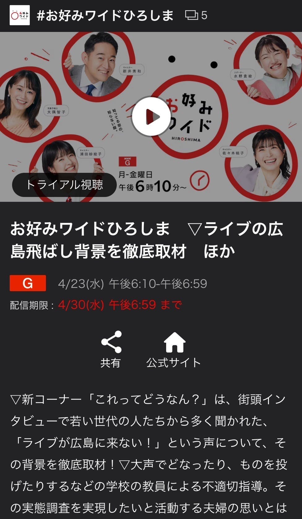 4月23日NHK お好みワイドひろしま