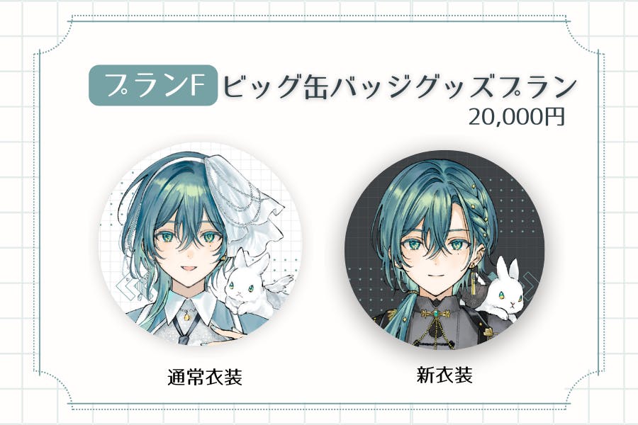 一周年イラストを使用したマグカップをメインにグッズ5点がセットでついてくるプランです