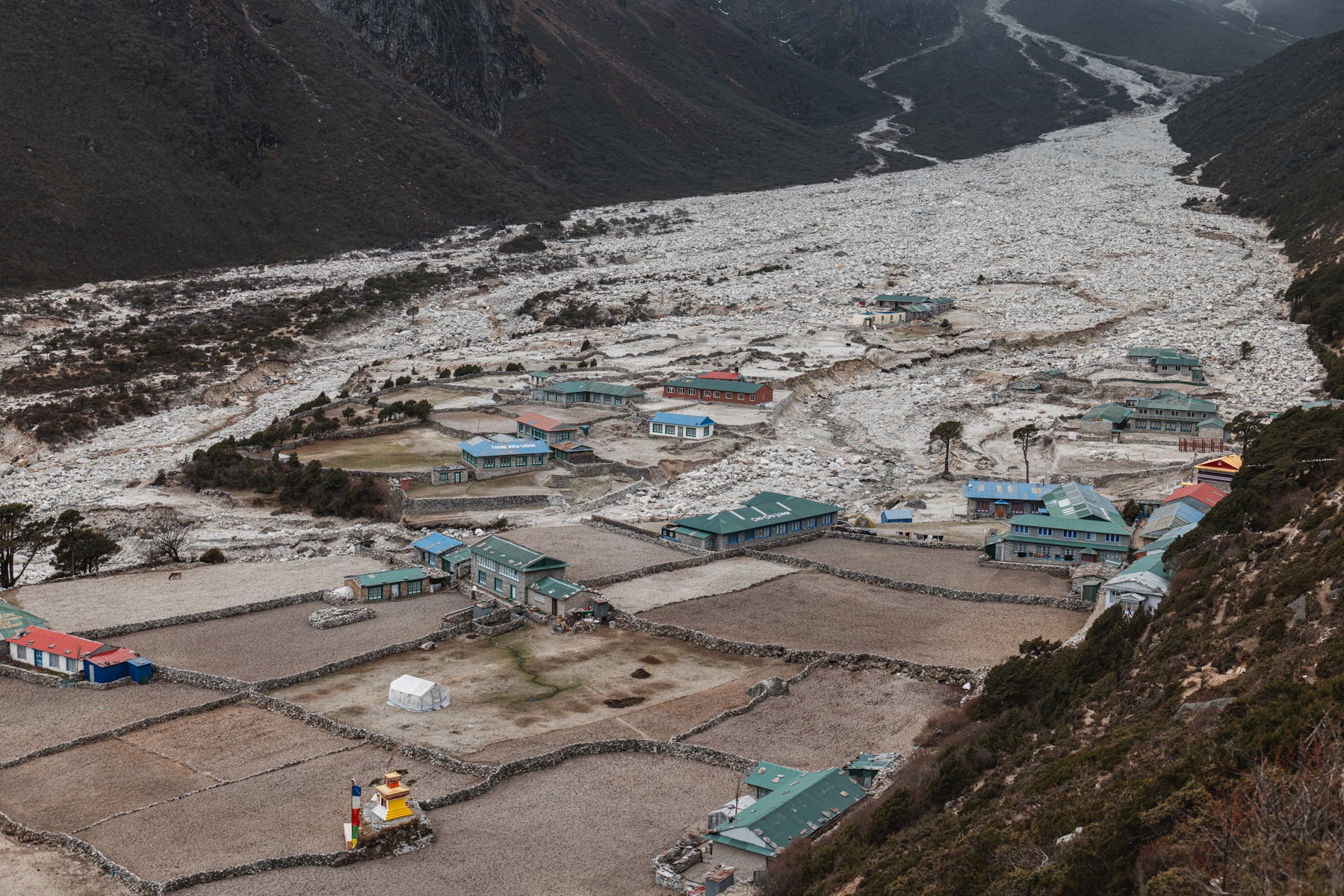 去年のエベレストベースキャンプでは氷河の氷柱が各所に見えたのですが、今年は目に見えて減っていました。