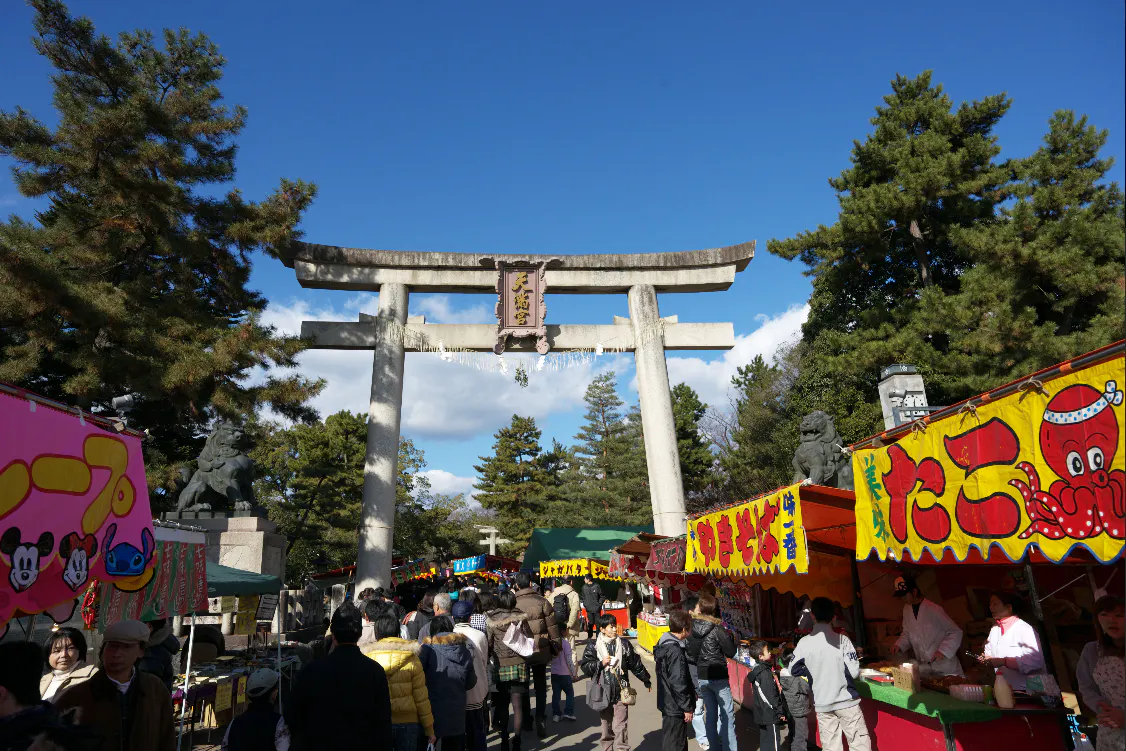 毎月25日は天神さまのご縁日として天神市が開催されています。