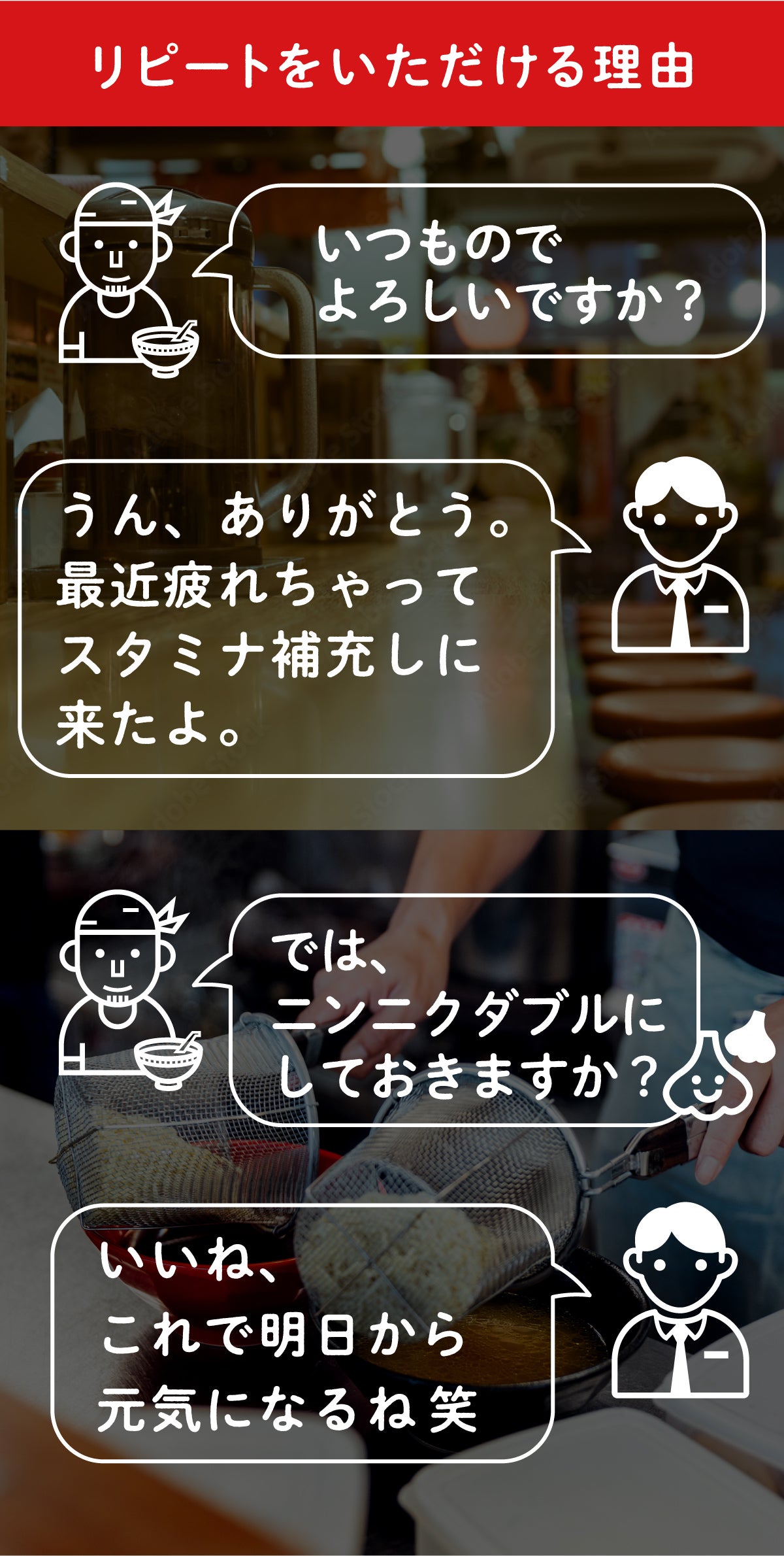 しかし通っていただくうちに、きっと私たちの味の虜になっていただけると信じています。
