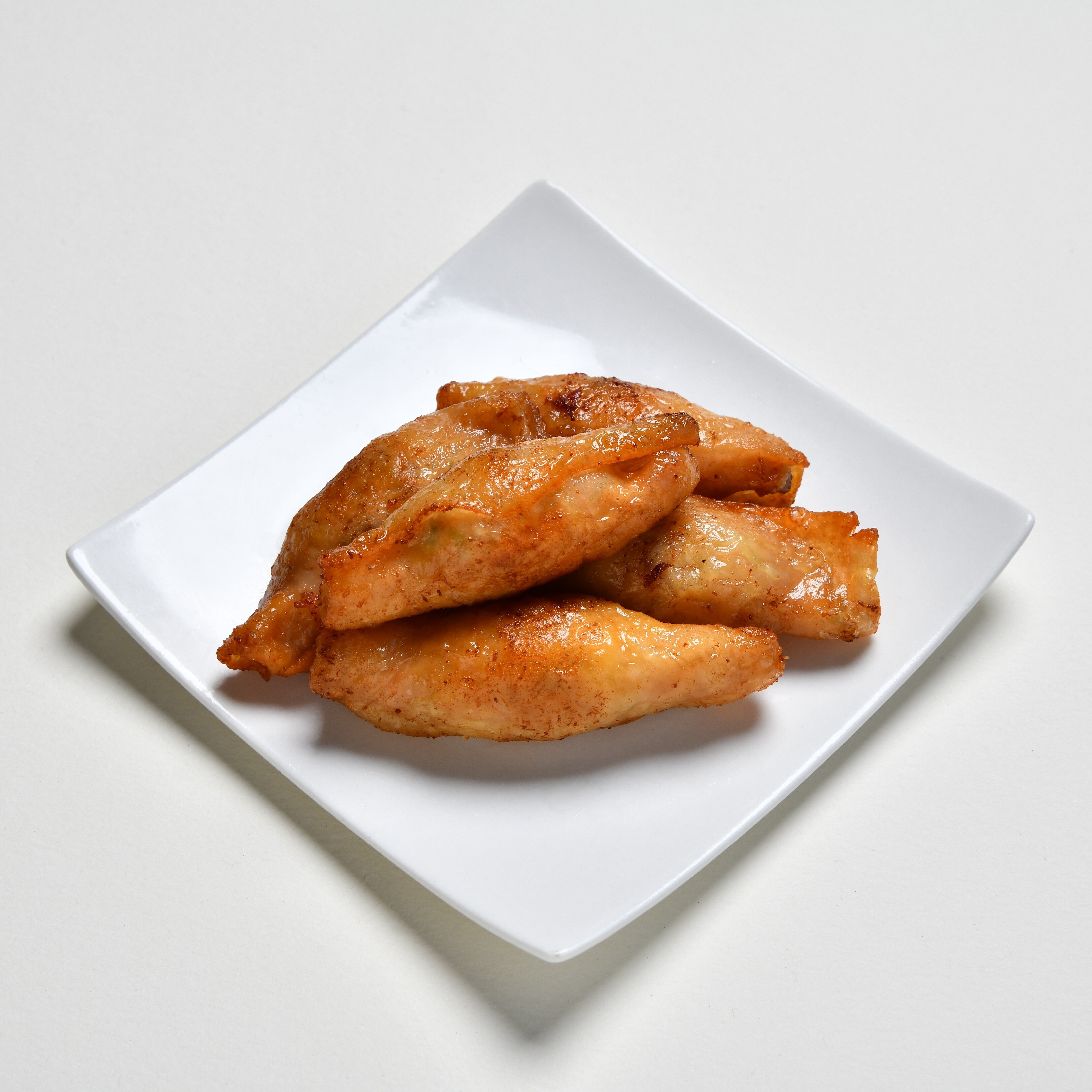 餃子の餡を鶏肉で包み込んだボリュームたっぷりの商品です。餃子の餡に野菜、ニンニク油、ニンニクチップなど数種類の食材を使用しておりますので、香ばしい旨味の餃子が鶏肉の旨味とマッチした相性抜群の逸品となっております。