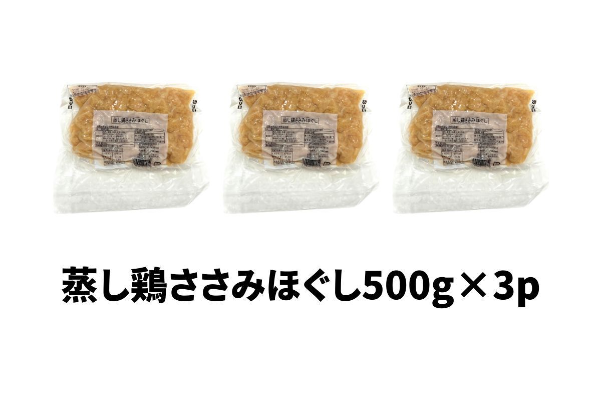 【リターン商品③】→ 蒸し鶏ささみほぐし500g×3パック