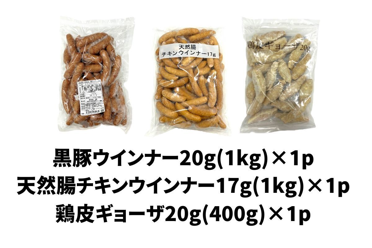 【リターン商品⑦】→ 黒豚ウインナー20g(1kg)×1パック + 天然腸チキンウインナー17g(1kg)×1パック + 鶏皮ギョーザ20g(400g)×1パック