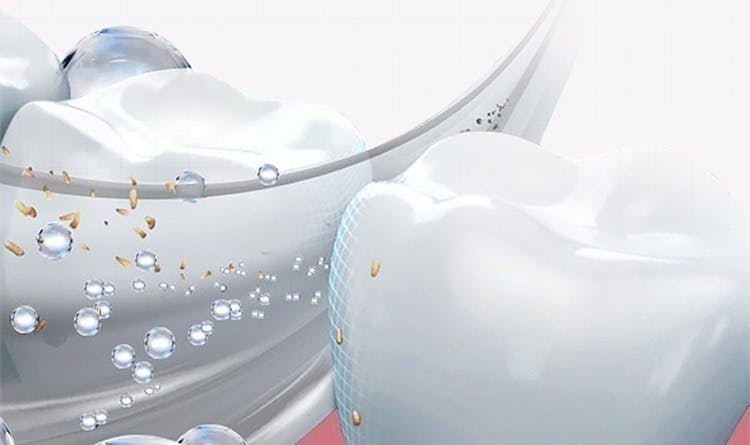 高周波音波振動技術により、従来の歯磨きに比べ歯の隙間の奥深くまで浸透し、歯の汚れを除去できます。