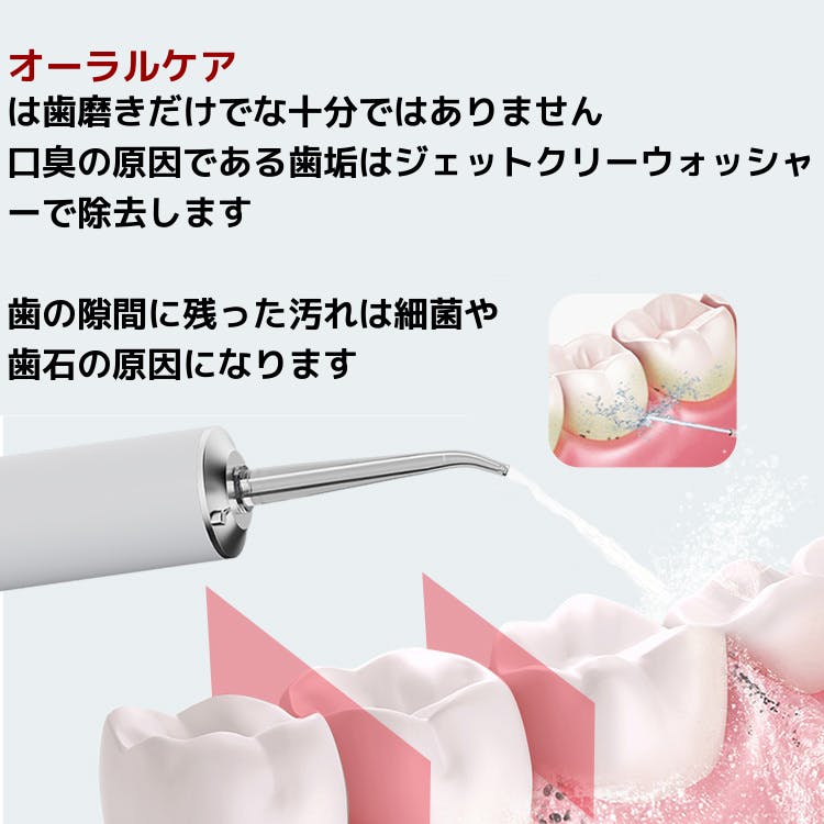 そこで登場するのが、『ジェットクリーンウォッシャー』。強力なジェット水流で、歯ブラシでは落としきれない汚れをしっかり洗い流し、清潔で健康的な口内環境を保つことができます。