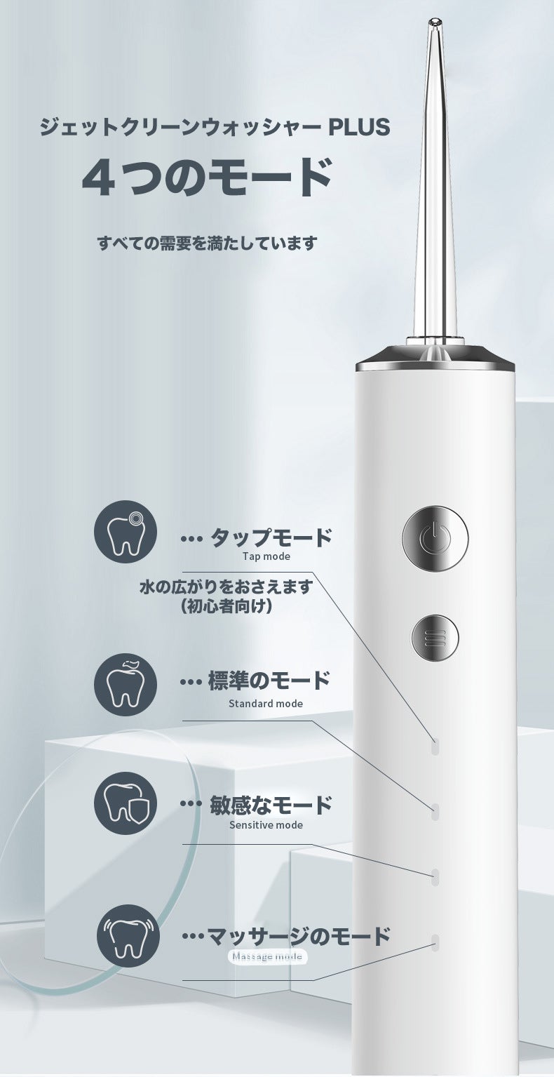 ジェットクリーンウォッシャーCoreは、ノーマルモード・ソフトモードのほか歯間洗浄だけでなく、歯ぐきを優しく刺激するパルスモードを搭載。