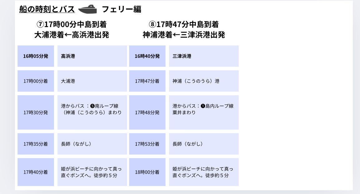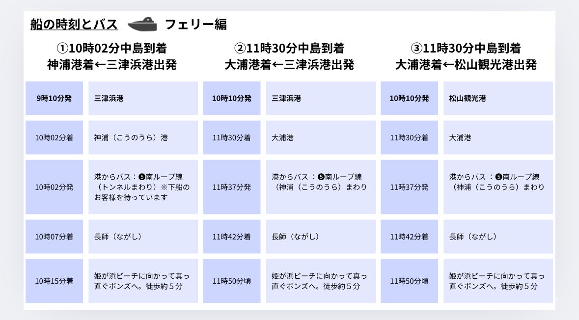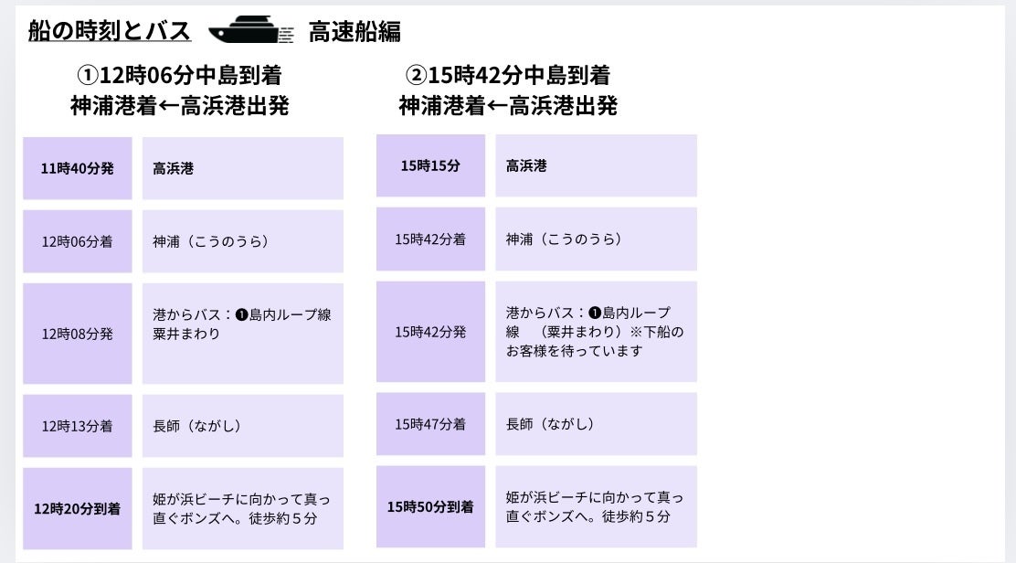 *時刻表・運賃・島内交通アクセスについてはコチラ ➡ 中島汽船HP
