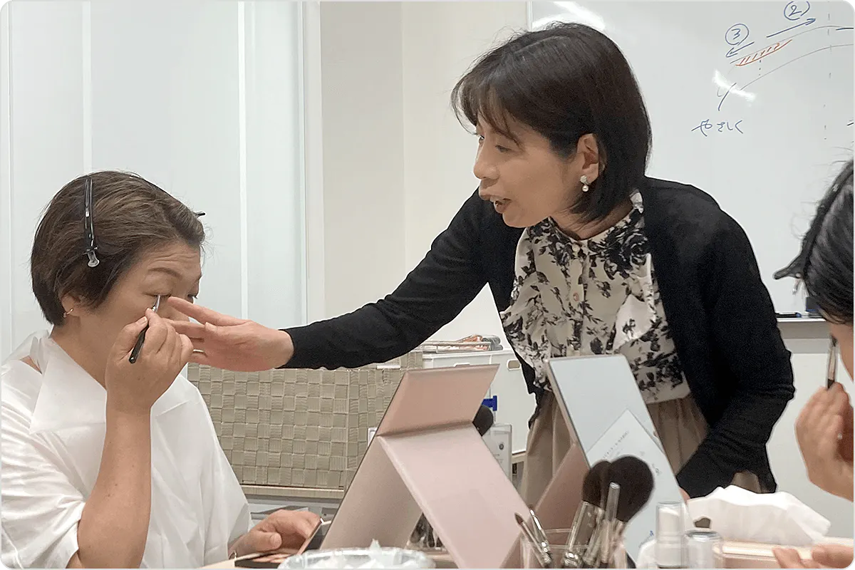 みなさんにメイクアップ技術を教える中で、スキンケアの大切さも同時に伝えています。