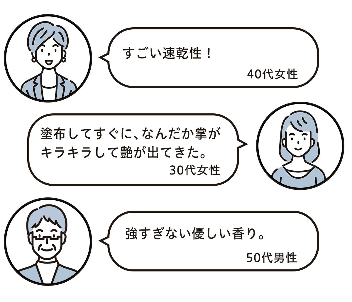 ほんのりひんやりとした触感でスッと手に染みこむ速乾性。