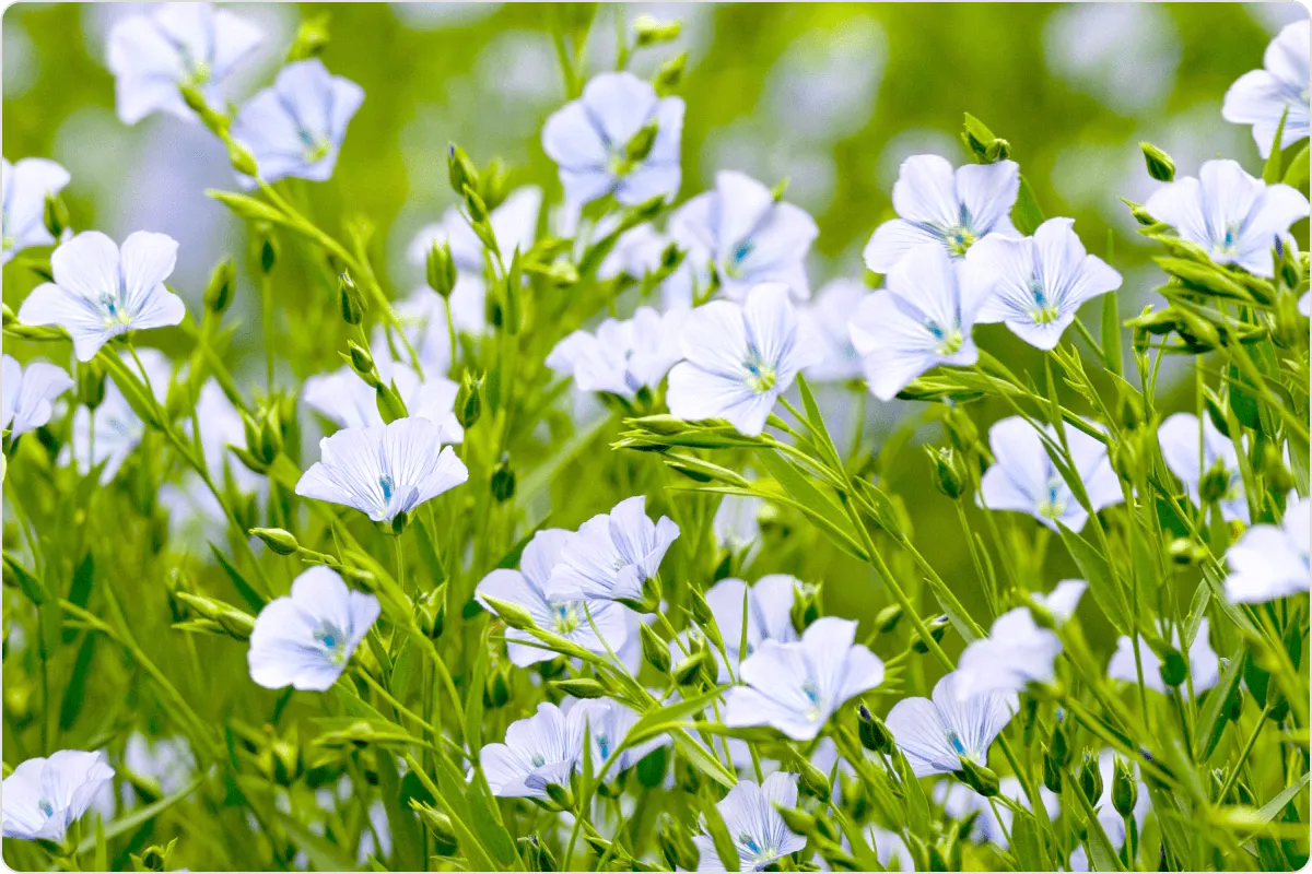 亜麻は花弁脱離型の植物で、その花は採取後(茎から脱離後)も萎れにくく、美しい天色を維持し続けます。