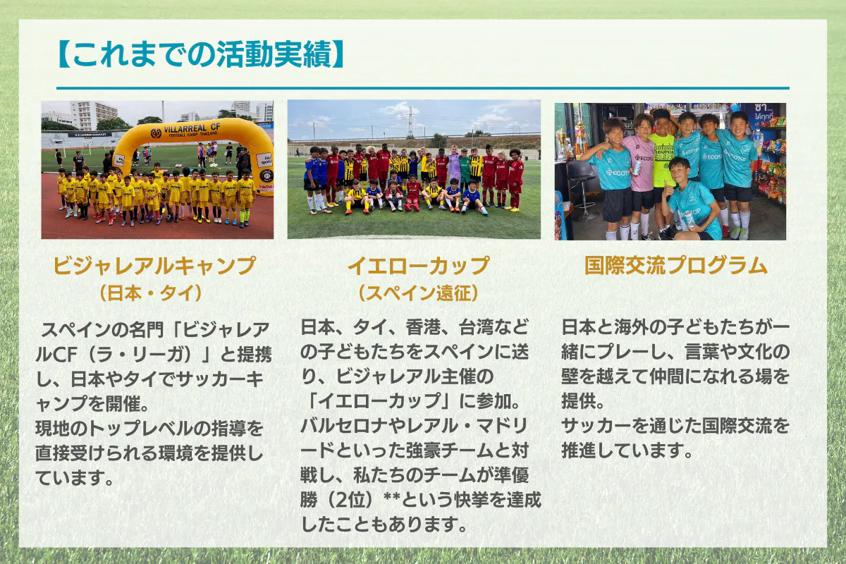 この事業では日本と世界の子どもたちがサッカーを通じて楽しく交流し、夢を追いかける環境を作ることを目的に活動しています。