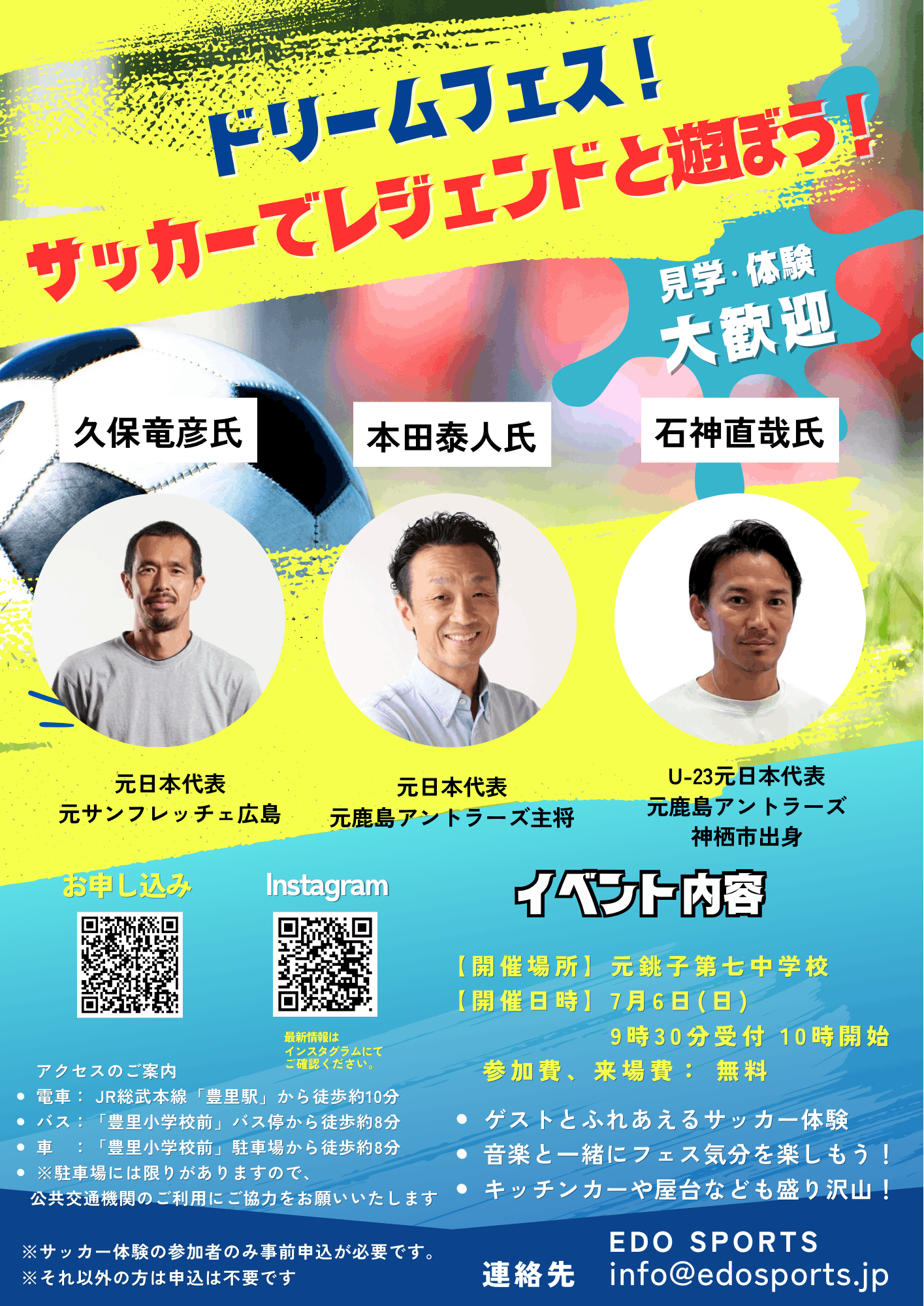 → 地元・鹿行エリア出身の元Jリーガー。鹿島アントラーズではDFとして活躍し、引退後も地域密着でサッカー指導に尽力。地元の子どもたちにとっては身近な憧れの存在!