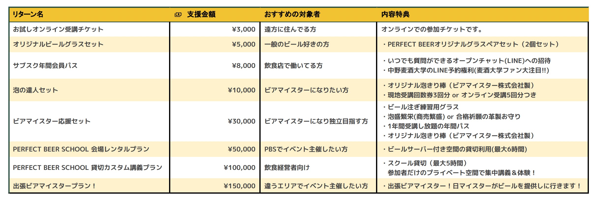 ビールをもっと 深く知り、もっと楽しめる リターンを揃えました!この機会に、 特別なビール体験を一緒に楽しみましょう!🍻