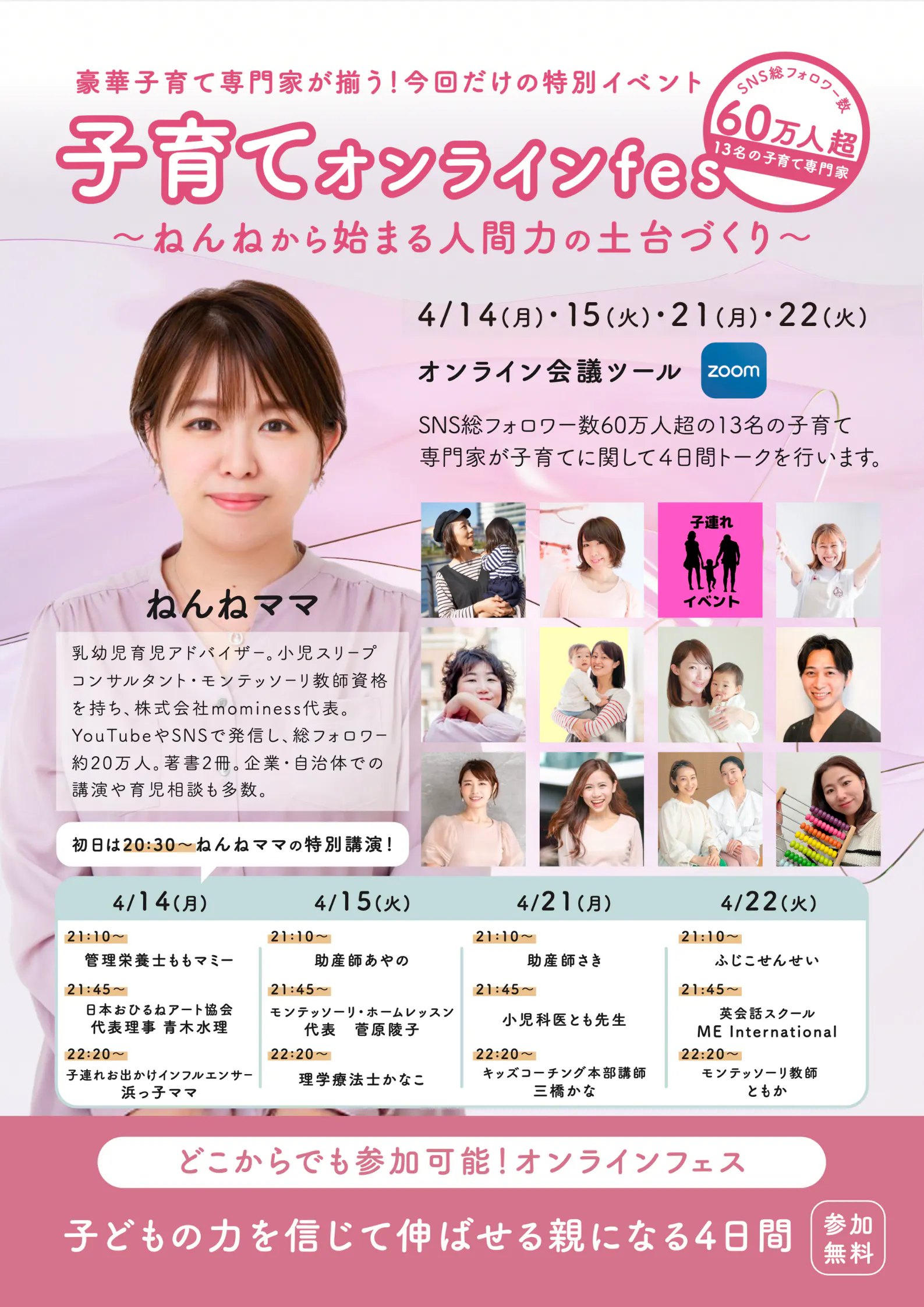 4日間にわたる特別なfes、子どもとの関わり方や子育てのことを考えるよいキッカケになるはずです。