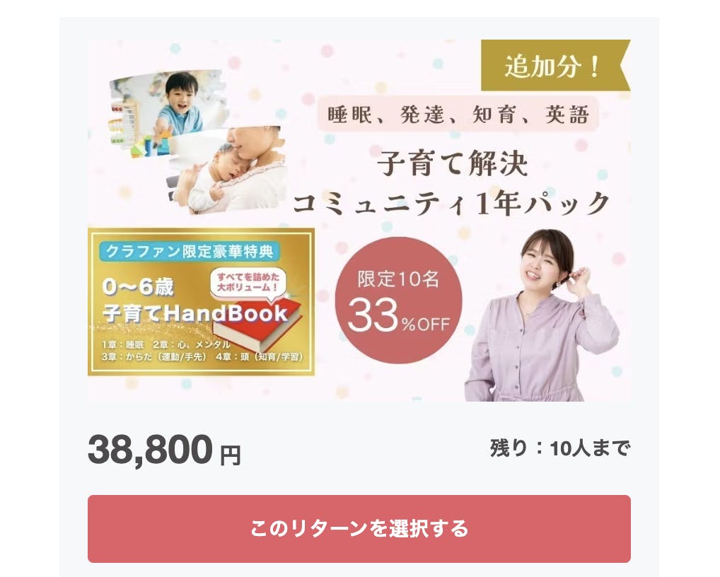 金額を少し変更した形になりますが、またリターンを追加しましたので