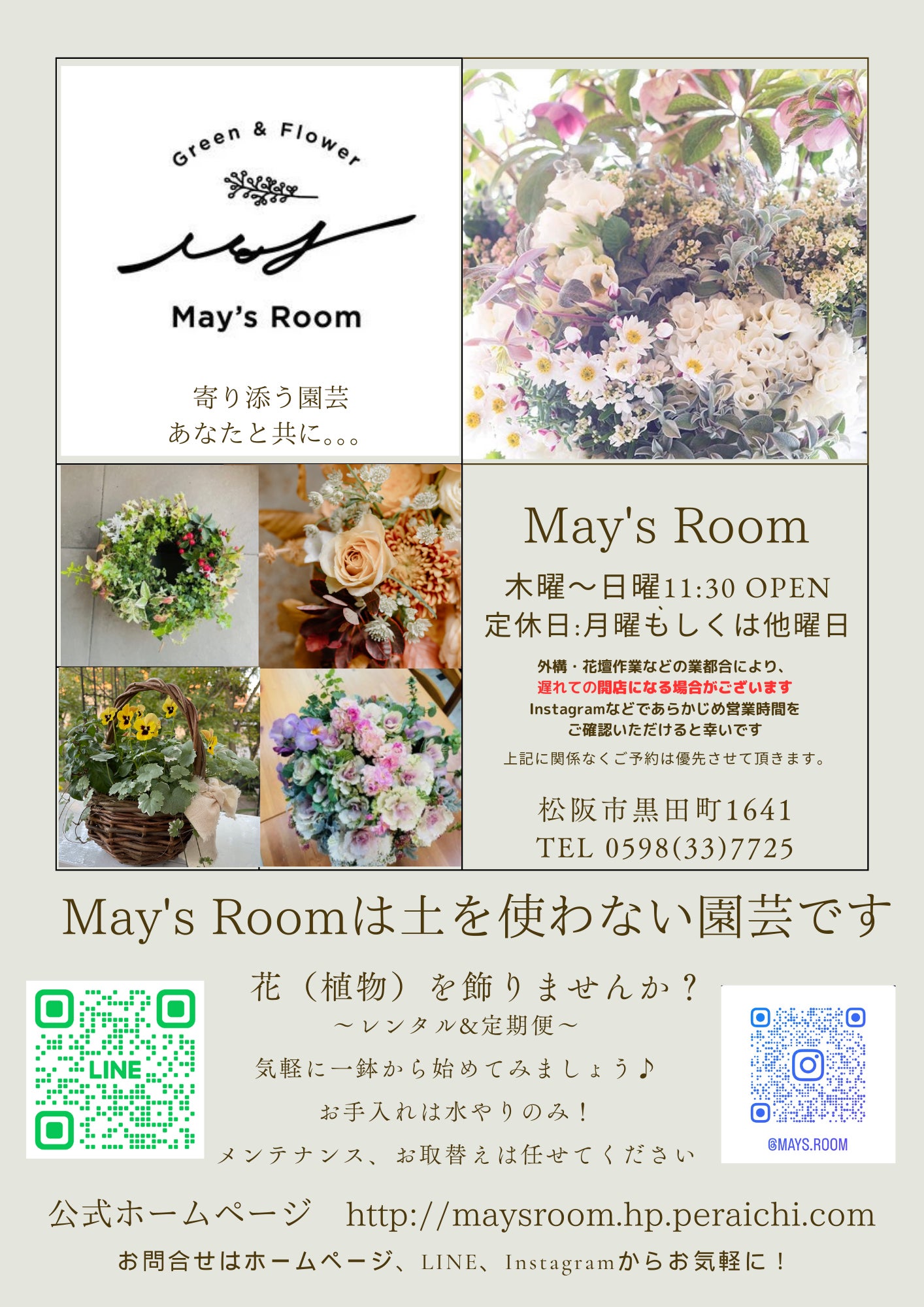 May’s Room にて作品販売、ワークショップから外構、花壇作りまで行っています。