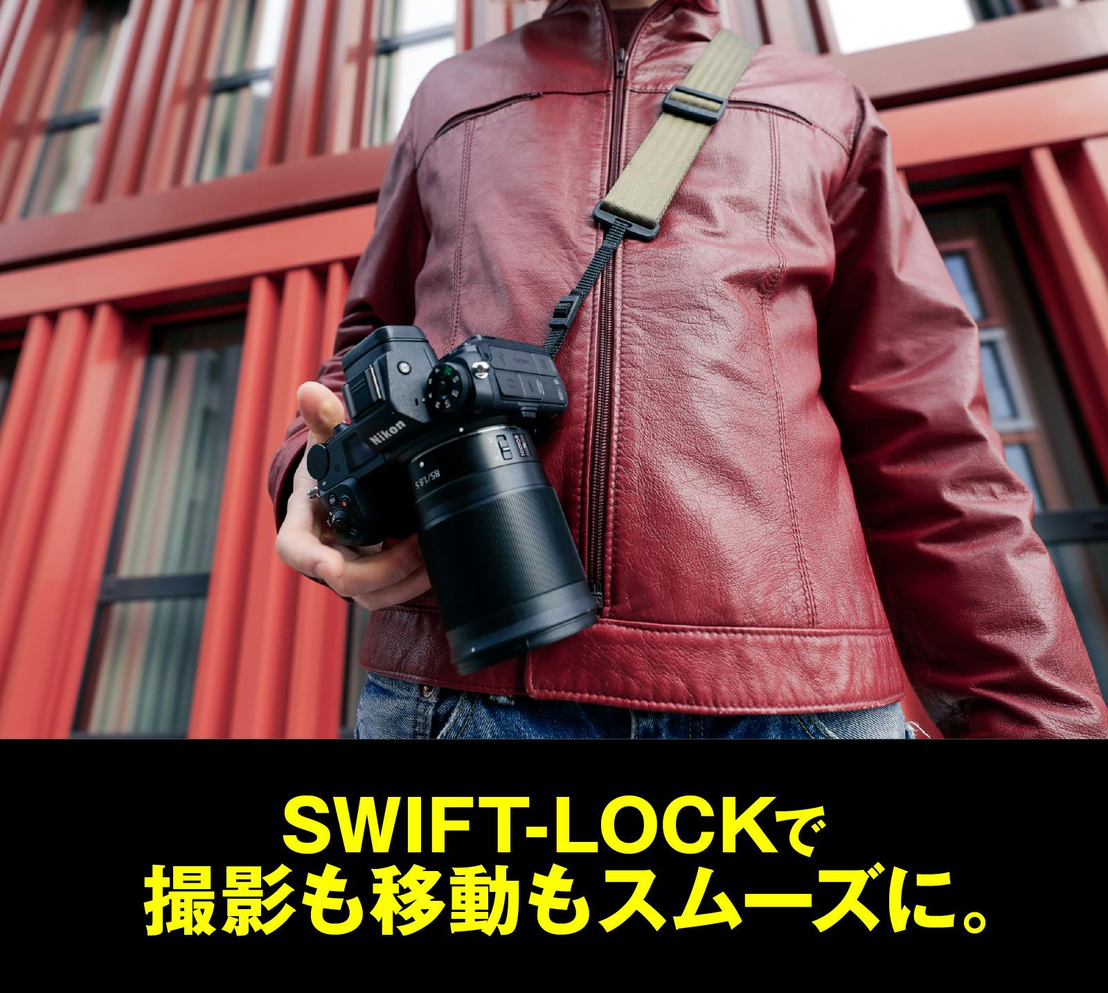 SWIFT-LOCKがあれば、カメラを提げたままの行動もスムーズです。
