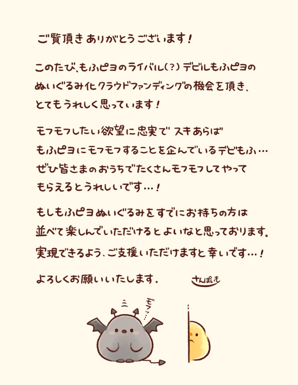 デビもふぬいぐるみ化プロジェクトを応援して頂き、誠にありがとうございます!