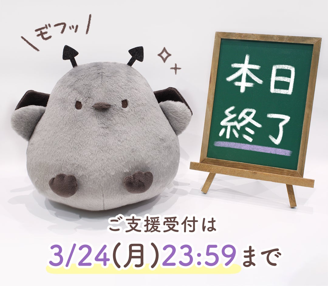 2025/03/24 14:14この度は「デビもふ」ぬいぐるみ化プロジェクトへ大変多くのご支援頂き、誠にありがとうございます!いよいよ終了間近となりました。ご支援の受付は『本日 3/24(月) 23:59まで』となります!デビもふも皆様の元でモフモフできるのを楽しみにしているようです♪ご検討中の皆さま、この機会お見逃しなく!お申込み忘れないようぜひご支援の程、宜しくお願いいたします! もっと見る