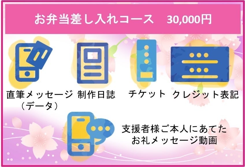 その日居合わせた出演者で「〇〇さんからお弁当頂きました!ありがとうございます!!」というような、ご支援者様へ向けた世界に一つだけの動画を撮影し、お送りさせていただきます!
