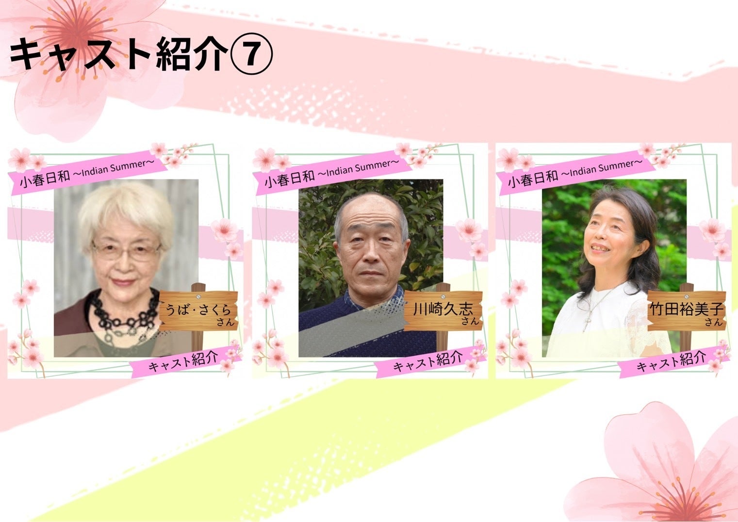 箕面シニア劇団『すずしろ』に寄生する昭和初期人間です。 この度、ご縁があって、映画『小春日和』に出演させて頂き、心から嬉しく存じます。 名のある俳優の方々とご一緒出来るなんて!冥土の土産と、密かに張り切っております。 皆様の迷惑にならぬ様頑張りますので、宜しくお願い致します。