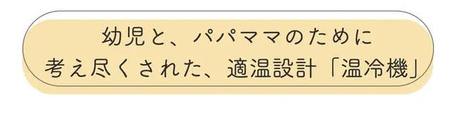 ママやパパは、温度調節も不要で、電源を入れるだけ。ボタンひとつで、3段階の最適な温度で安心です。