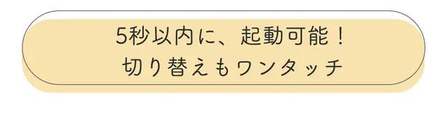 たった5秒で起動できるから、使いたい時にサッと手間なく使えます。