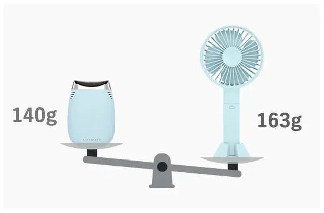 ※比較画像はイメージです。楽天市場、Amazonの最もレビュー件数が多い持ち運び扇風機の重量の平均値と比較しました