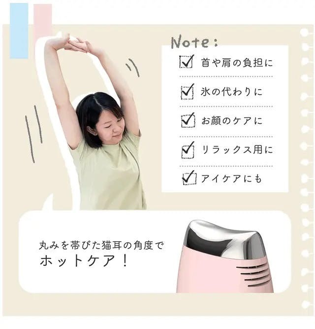 首や肩、お顔や手足の疲れた部分をケアするように、押し当ててお試しください。
