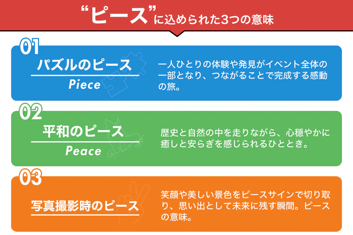 主催地となる地域の魅力とともに、ひとつひとつのピースが心に残る特別なランニング体験を届けることを目指しています。