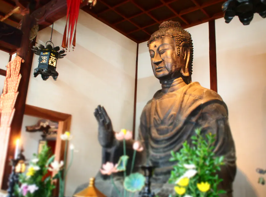 6世紀末から7世紀初めに蘇我馬子の発願で建てられた日本最古の本格的仏教寺院。本尊である銅造釈迦如来坐像(重要文化財)は「飛鳥大仏」の通称で親しまれています。