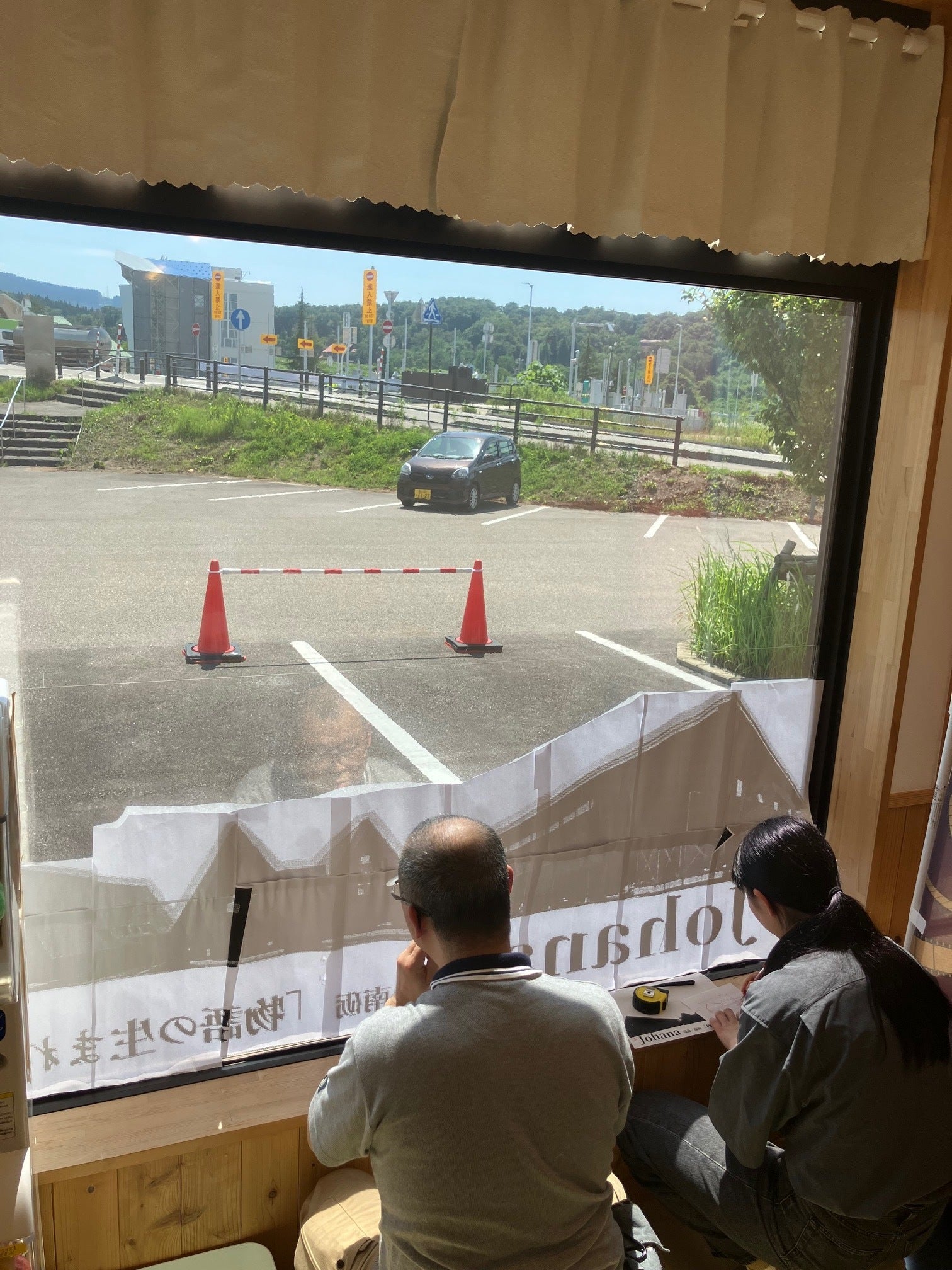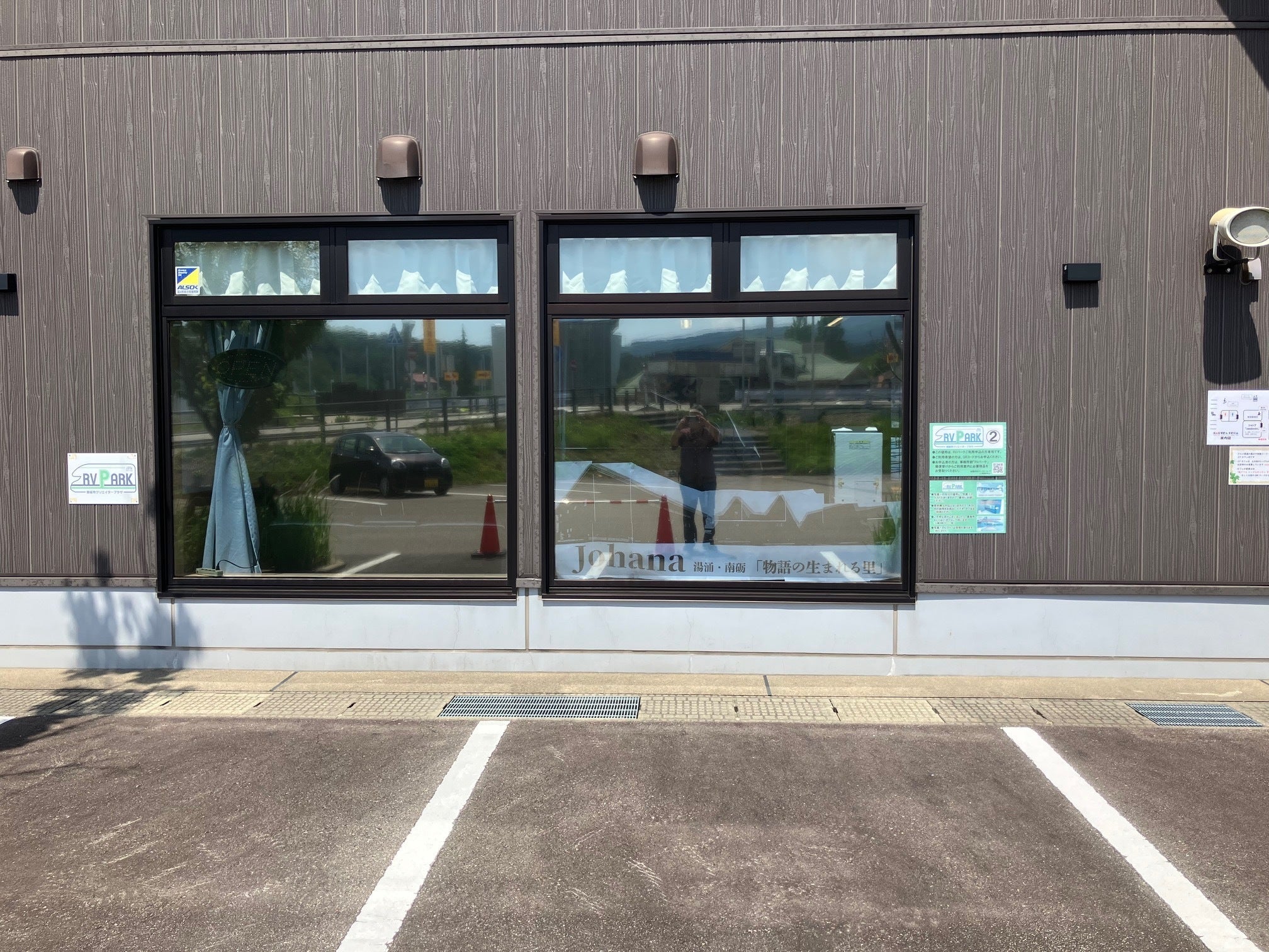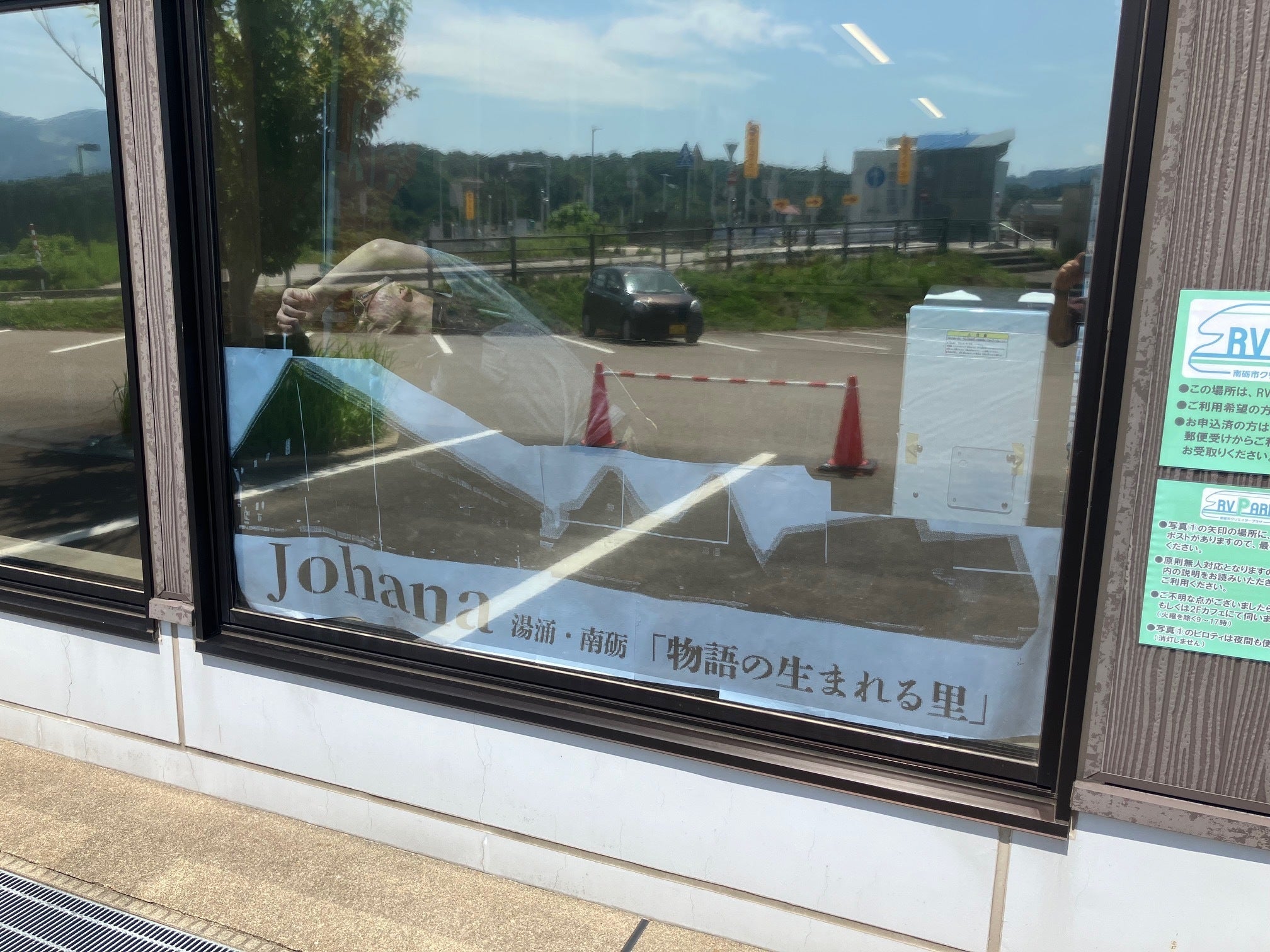 フレームのコンセプトが、「施設が休みの時でも外からの写真撮影に使える」なので、大きな窓を備えた施設内のショップ「parubooks」の窓の内側に、ガラス越しに設置することにしました。ピーエーワークスさんの社屋外観、南砺市クリエイタープラザの外観を迫力ある彫刻で再現。加えて城端サービスエリアに来たことがわかる「Johana」の文字と、お隣の金沢市湯涌温泉さんと協力して2021年から「速旅ドライブプラン」造成などで継続しているプロジェクト「湯涌・南砺 物語の生まれる里」を彫っていただきます。