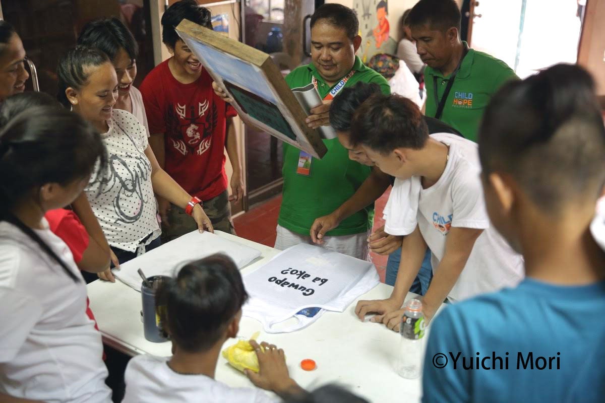 8月末には、職業訓練のひとつ「シルクスクリーン・トレーニング」が行われ、印刷技法のひとつシルクスクリーンをつかってTシャツにデザインした模様をプリントする方法を学びました。若者たち14人が参加し、真剣なまなざしで講師の説明を聞き、実践しました。