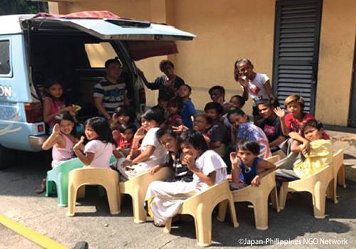 7歳のころ、そんなジュードさんの人生を変える出来事がありました。ある日、子どもたちが集まっているのを見かけて近づいてみると、みんなが車の中のテレビを見ていました。テレビには子ども向けの教育番組が流れていて、その横には男の人が立っていました。彼は、クヤ・ジェシー(「クヤ」はフィリピノ語でお兄さん)。現地NGOチャイルドホープのスタッフでした。