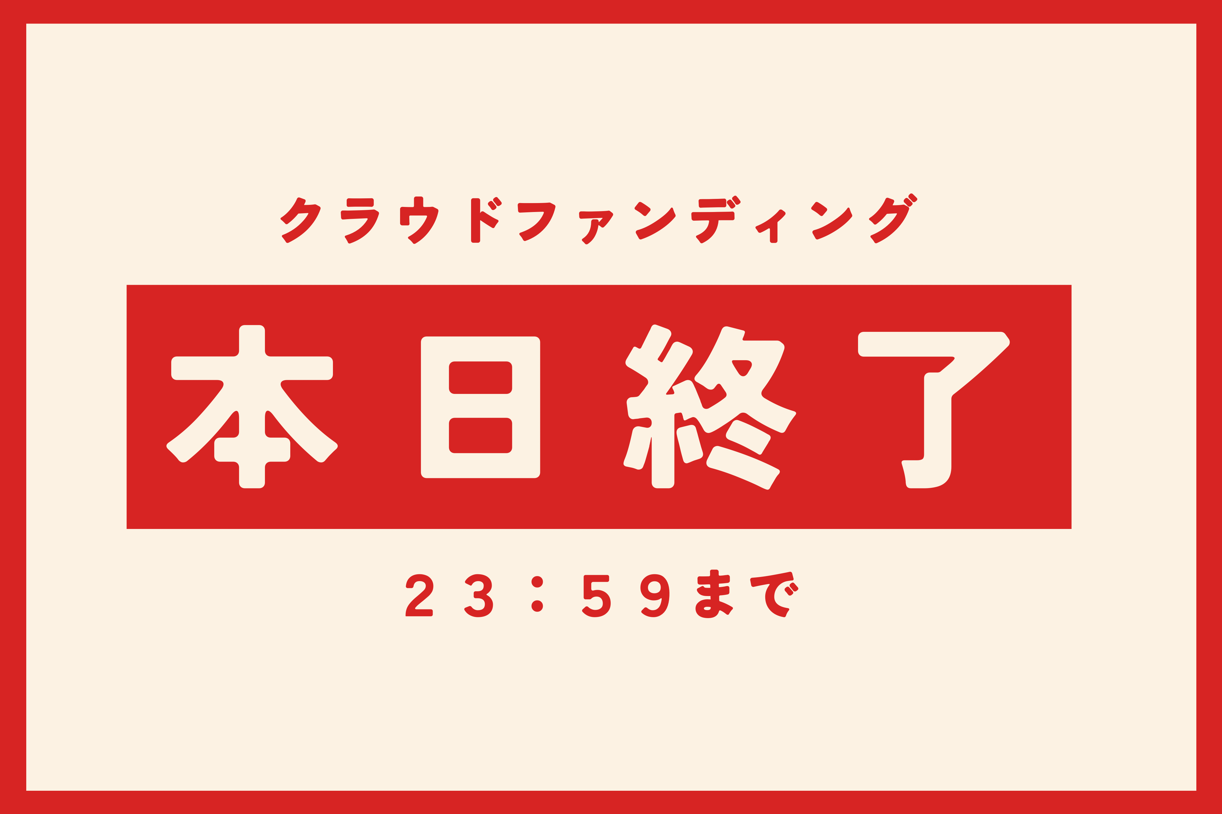 ついに、このクラウドファンディングが本日23:59に終了を迎えます。