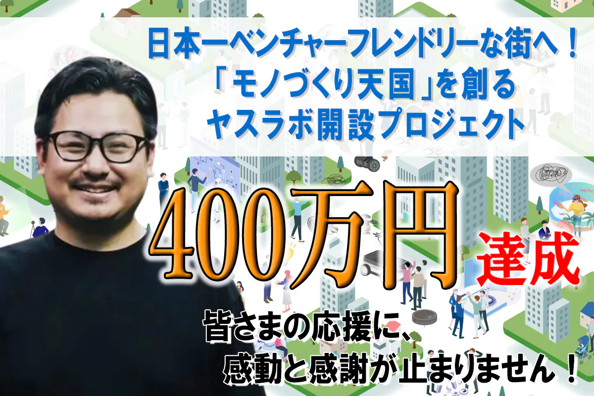 2025/05/30 15:20ついに……3rd GOAL《400万円》達成いたしました!!!ご支援いただいた皆さま、本当に、本当にありがとうございます!!目標達成率は210%、ご支援者数は213名。この数字に込められた一つひとつの想いの重み、私たちはしっかりと胸に刻んでいます。皆さまの応援によってヤスラボは、「単なるシェアオフィス・コワーキングスペース」ではなく、「新しいものづくりの拠点」として、確かな一歩を踏み出すことができます。本当にありがとうございます。ご支援の力で広がる未来今回のクラウドファンディングでいただいたご支援は、試作・実験が加速する世界最速級3Dプリンターや、開発支援・共創の場を整えるための機材導入費などに大切に活用していきます。ヤスラボを通じて、この街を再び「日本一ベンチャーフレンドリーな街」へと進化さる流れが着実に形に進んできています!!ラスト1日、最後のお願い!クラウドファンディングは明日5月31日(土) で終了します。この最後の1日、「応援したかったけど、まだ間に合うかな…?」という方がいらっしゃいましたら、ぜひ、この機会に少しでも私たちの挑戦にご賛同、ご参加していただけたら嬉しいです!すでにご支援くださった皆さまも、SNSやお知り合いへのシェアなど、最後の後押しをぜひお願いいたします!感謝とともに、これからここからがヤスラボの本番です。すでに始まっているプロジェクトも、これから始まる出会いも、すべては「応援してくださった皆さま」のおかげで生まれるものです。モノづくりの街・大田区/下丸子で、もっと面白く、もっと自由な“実験”を始めていきます。最後まで、走り抜けますので、どうぞ、ご支援、応援のほどよろしくお願いします!! もっと見る