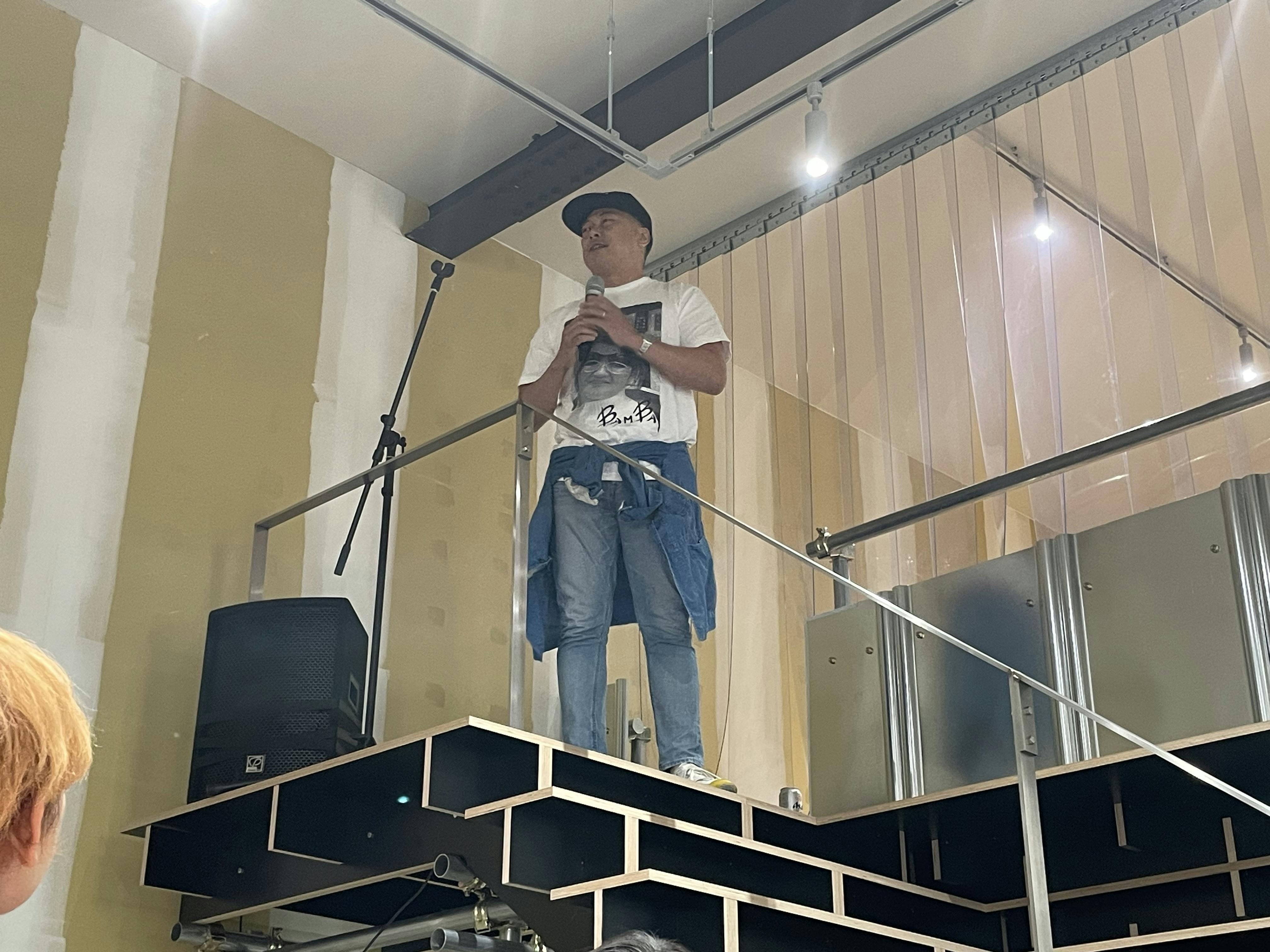 “中二階の階段ステージ”から、ご挨拶いただきました。