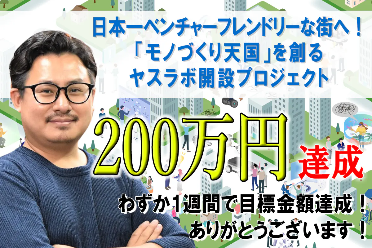 ヤスラボにご支援いただきました皆さまへヤスラボのクラウドファンディングは、開始1週間にして目標金額の200万円を無事に達成することができました!これもひとえに、私たちの想いに共感し、温かいご支援を寄せてくださった皆さまのおかげです。本当に、本当にありがとうございます。皆さまからの応援やメッセージ一つひとつが、私たちにとって何よりの励みとなり、大きな力になりました。このプロジェクトを通じて改めて、ヤスラボが目指す未来に期待してくださる方がたくさんいることを実感し、身が引き締まる思いです。そして、ここからが本当のスタートです。ご支援いただいた想いを胸に、さらに心を込めて、プロジェクトの実現に向けて全力で取り組んでまいります。今後の進捗も活動報告を通じてしっかりお届けしてまいりますので、引き続き見守っていただけると嬉しいです。改めまして、心からの感謝を込めて。ヤスラボ一同