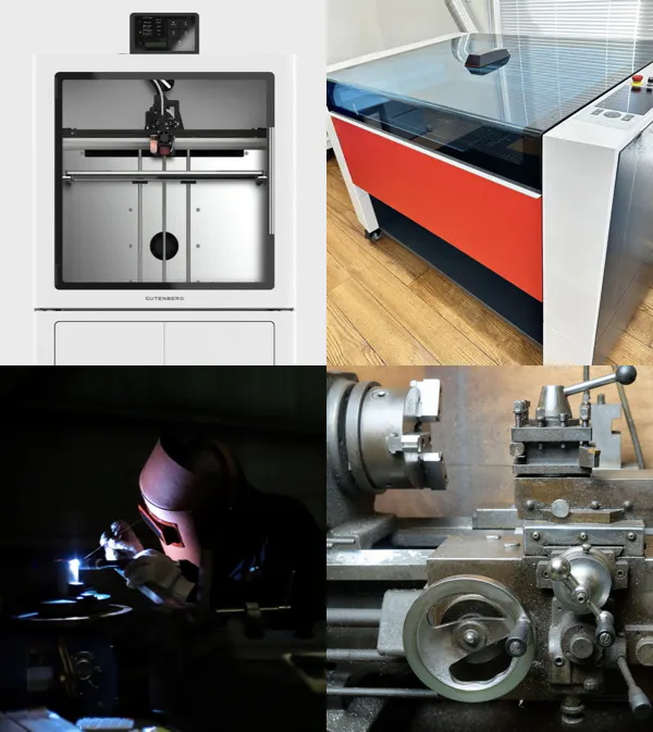 3Dプリンタや各種工作機械を完備し、アイデアをその場でカタチにできる環境を整備