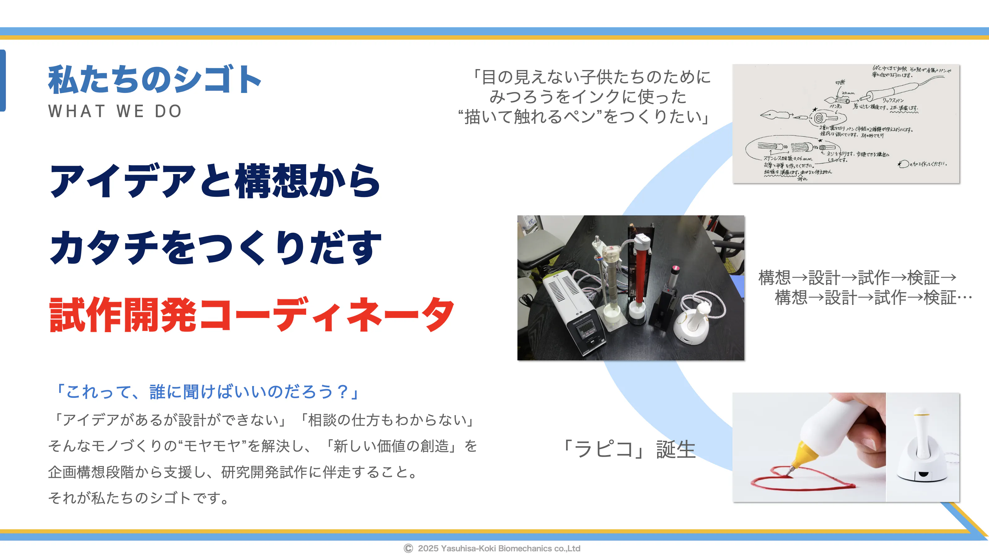 しかし我々は1969年の創業以来、医療系をはじめ多分野・多領域にわたる研究開発プロジェクトに携わり、”アイデアをカタチにする試作開発コーディネータ”として日本のモノづくりの最前線を縁の下で支え続けてきました。