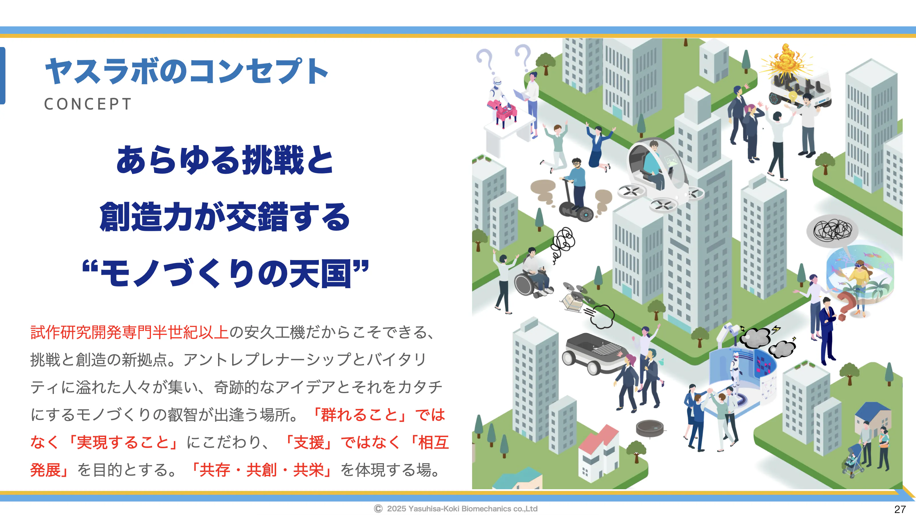 共存・共創・共栄を理念に、技術とアイデアが交錯し、未来を形にする場所です。