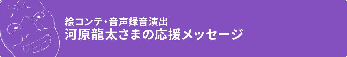 河原様は、これまで、数々の作品の演出などを担当されており、最近では「ドラゴンボールDAIMA」の演出など、有名作品に携わられております。河原様に演出をしていただけるなど光栄でなりません。