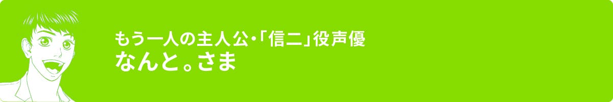 なんと。様には、主人公「しんじ役」を務めていただきました。なんと。様は、現在売り出し中の声優様でございます