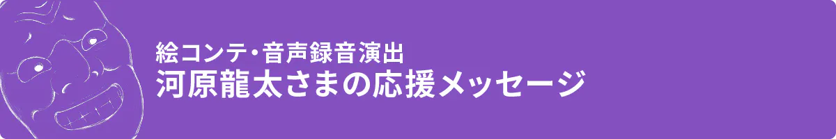 河原様は、これまで、数々の作品の演出などを担当されており、最近では「ドラゴンボールDAIMA」の演出など、有名作品に携わられております。河原様に演出をしていただけるなど光栄でなりません。