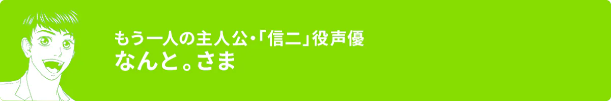 なんと。様には、主人公「しんじ役」を務めていただきました。なんと。様は、現在売り出し中の声優様でございます